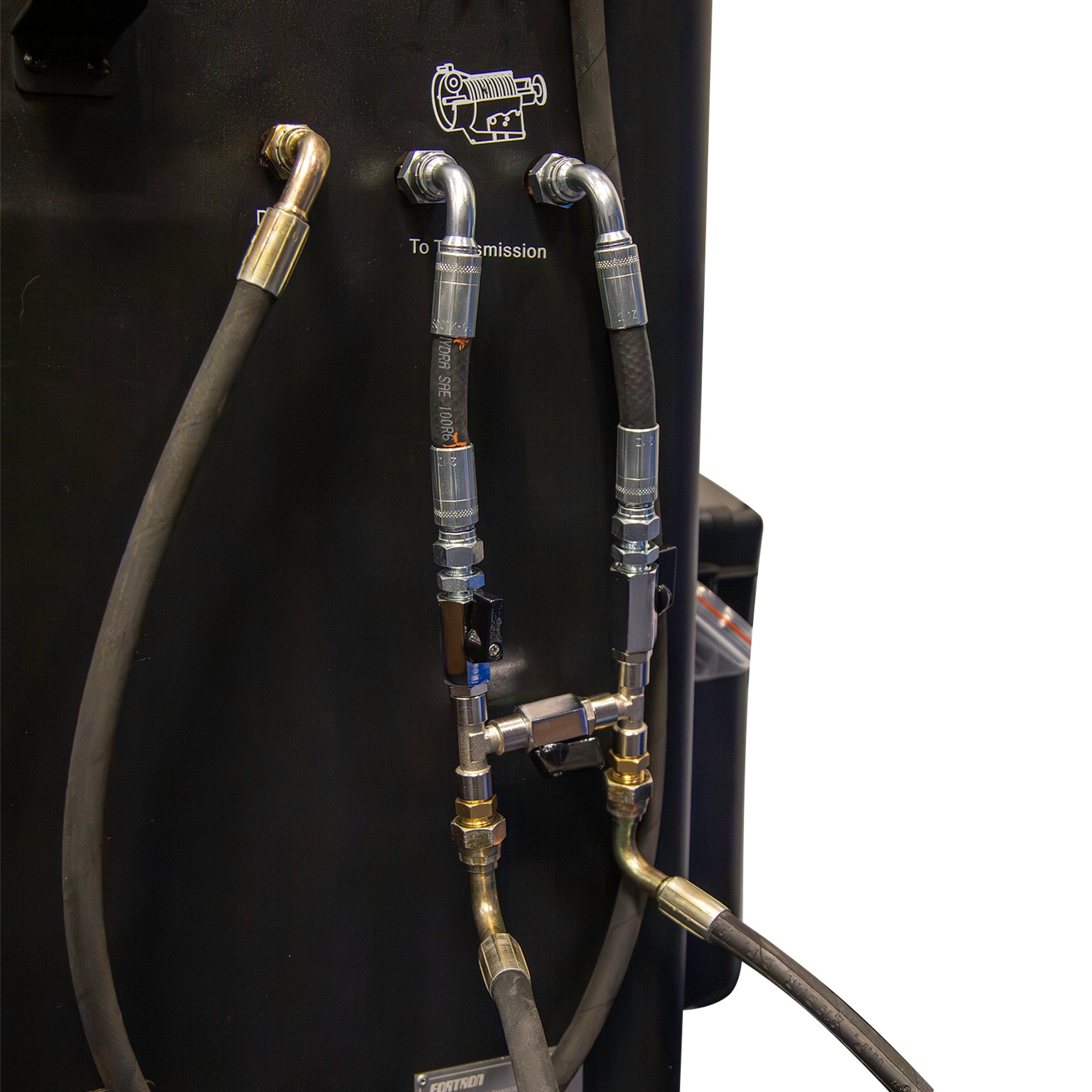 The unit connects directly to the ATF machine, with oil pipes attached to the adapter. This allows the vehicle to be hooked up to the machine while cold, avoiding the risk of burns from disconnecting at full operating temperature.